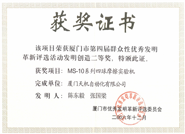 第四屆群眾性優(yōu)秀發(fā)明革新二等獎